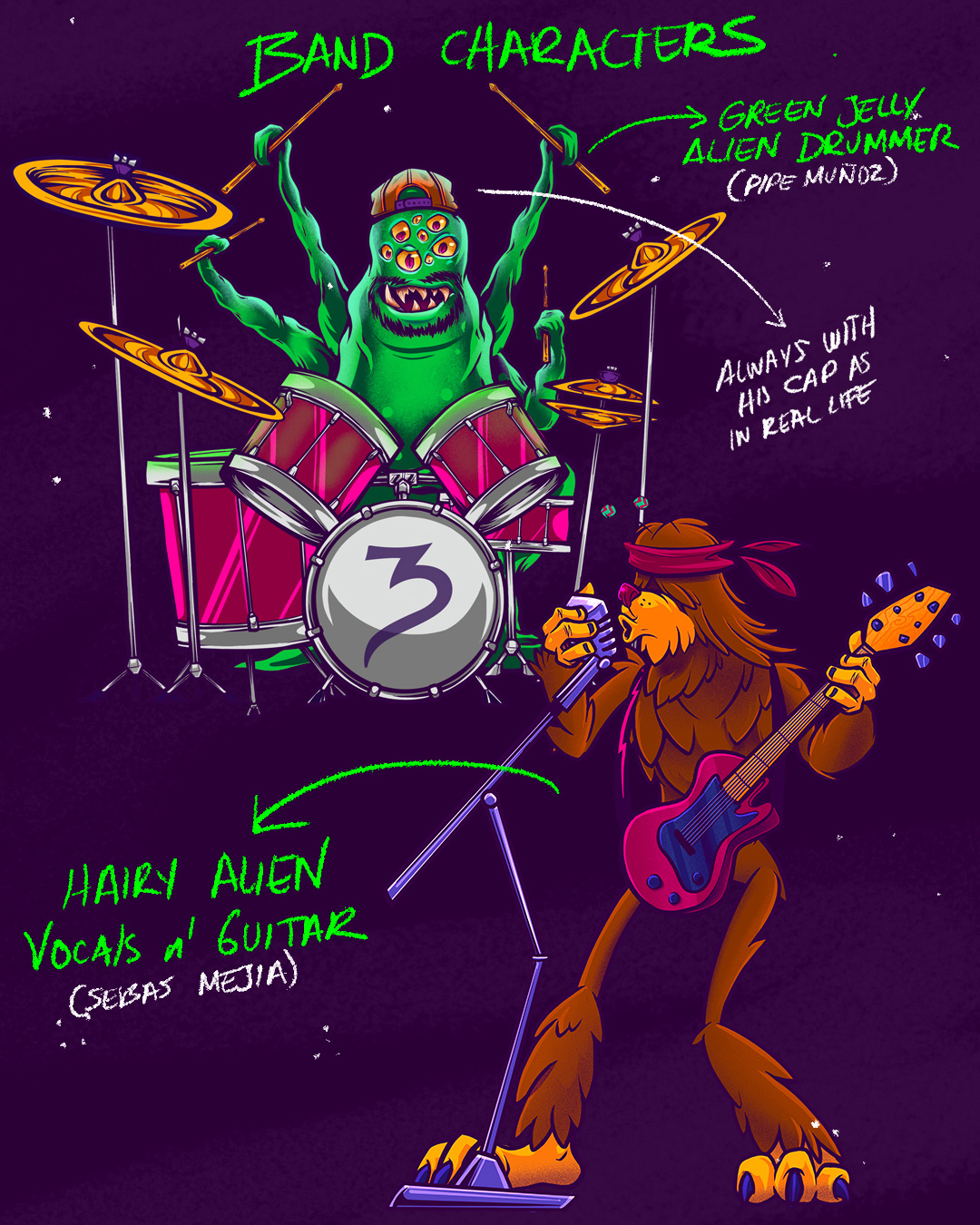 Estos rockeros de Medellín nos dieron carta blanca para la creación del videoclip de su canción “Nave Espacial”, un proyecto donde tuvimos la oportunidad de sacar nuestros mejores skills en ilustración y animación, para darle vida a una banda de extraterrestres, a una pareja de enamorados y a todos los escenarios que componen están historia de amor espacial.